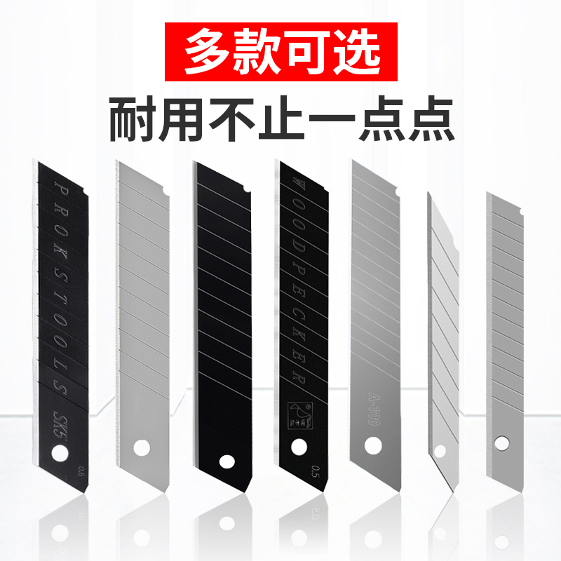 啄木鸟刀片大号美工刀片多用途加厚壁纸刀片墙纸美缝铲刀刀片介刀片黑刃刀替刃18mm