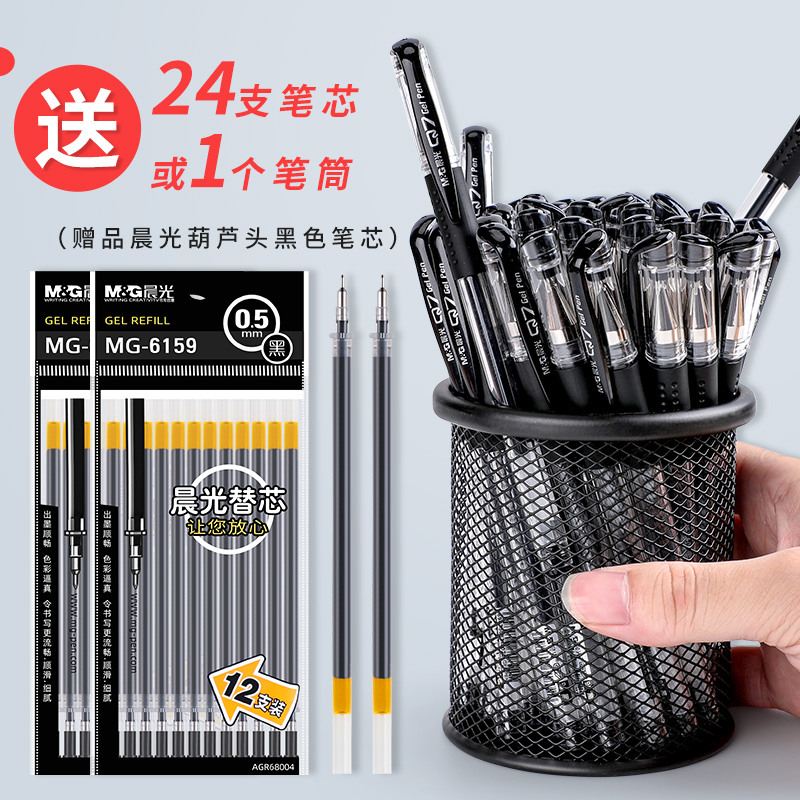 包邮晨光k35按动中性笔水笔学生用考试碳素黑色水性签字笔芯0.5mm