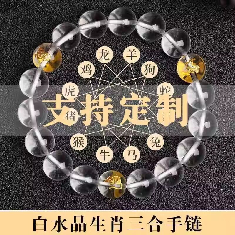 白水晶三合局生肖手链蛇年本命年护身符手串男女士本命生肖礼物