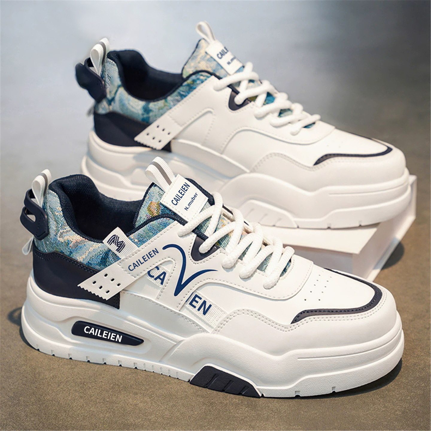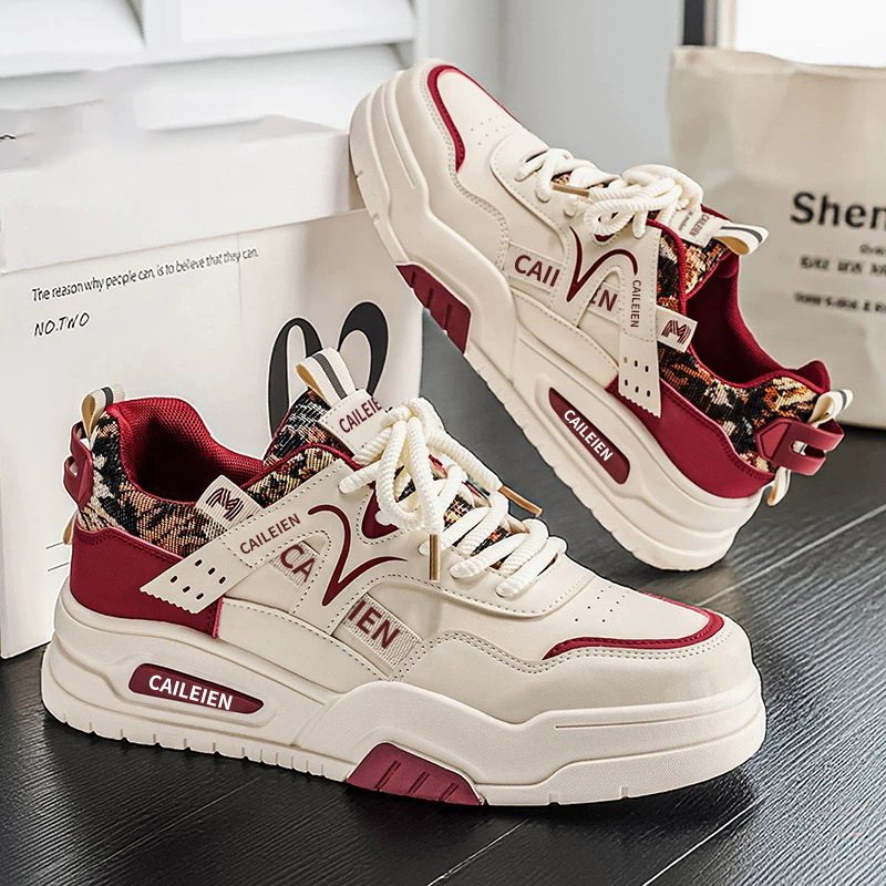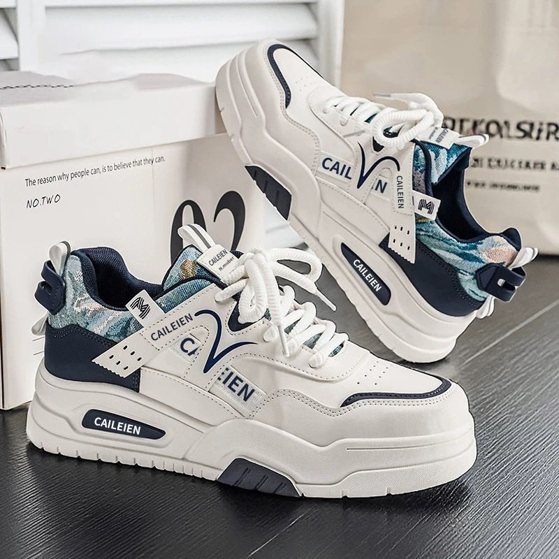 男鞋板鞋春季2026新款潮牌百搭厚底皮面休闲板鞋男士增高小白潮鞋