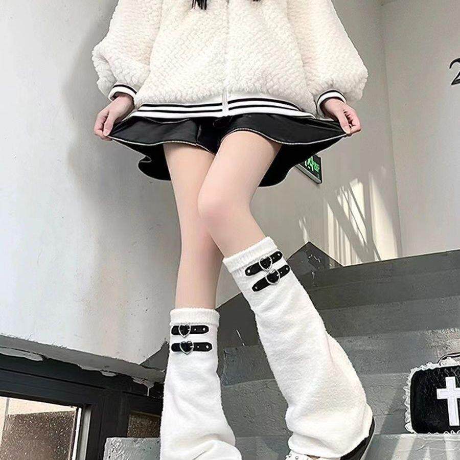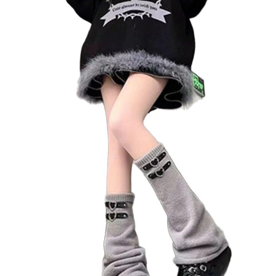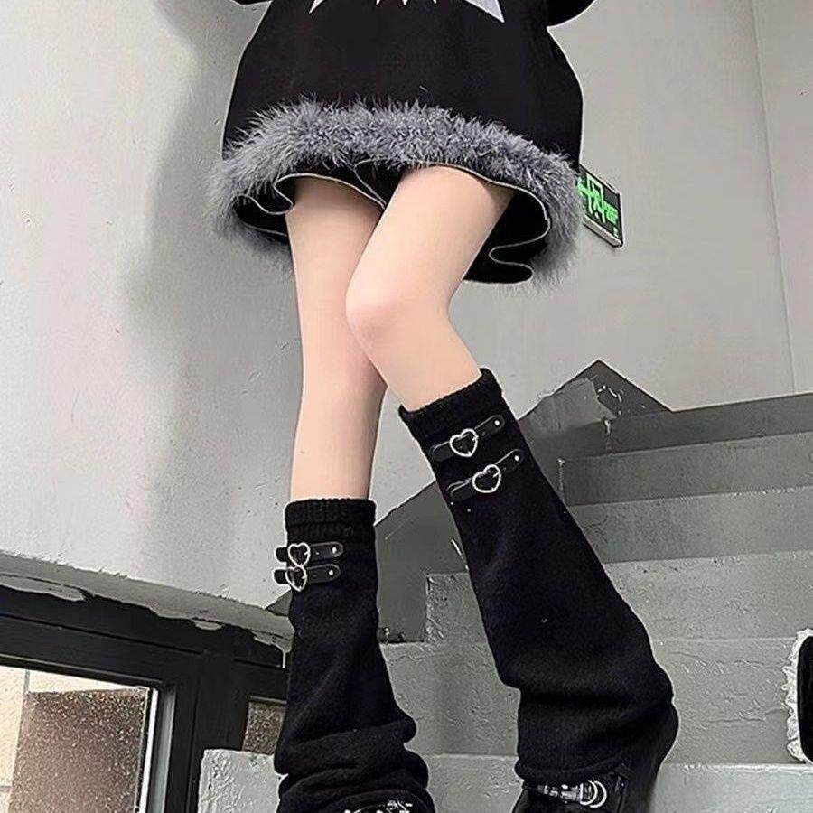 日系原创针织阔腿袜堆堆袜套y2k辣妹日系亚文化爱心皮扣jk长筒袜