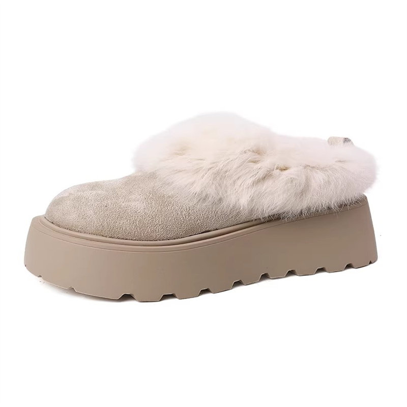 皮毛一体毛毛拖鞋女外穿2024新款包头厚底雪地靴增高半拖羊毛拖鞋