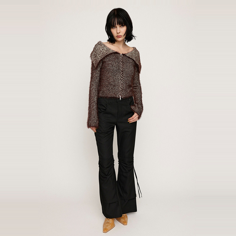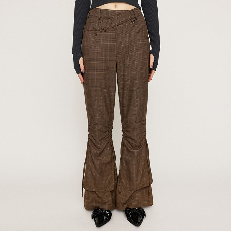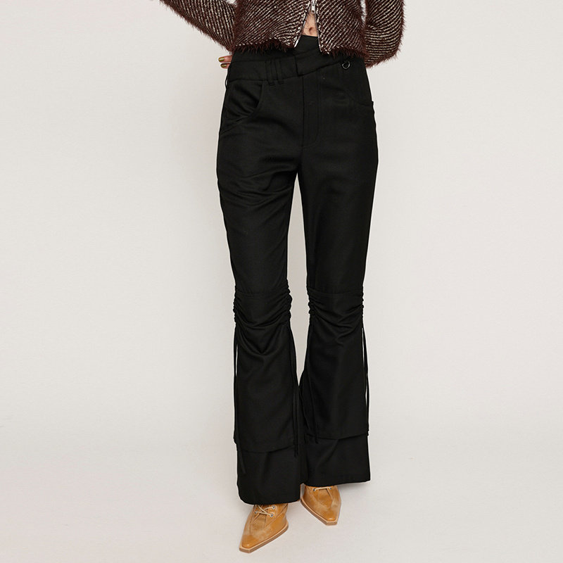 SLY 冬季复古港风Y2K抽褶微喇裤高腰休闲裤030HAR31-3681