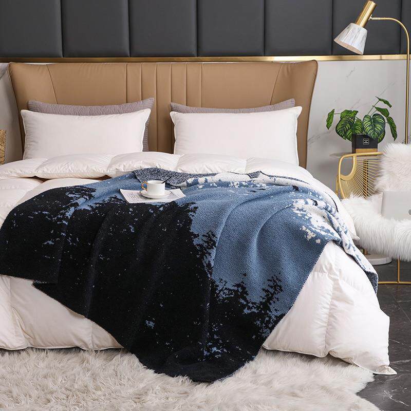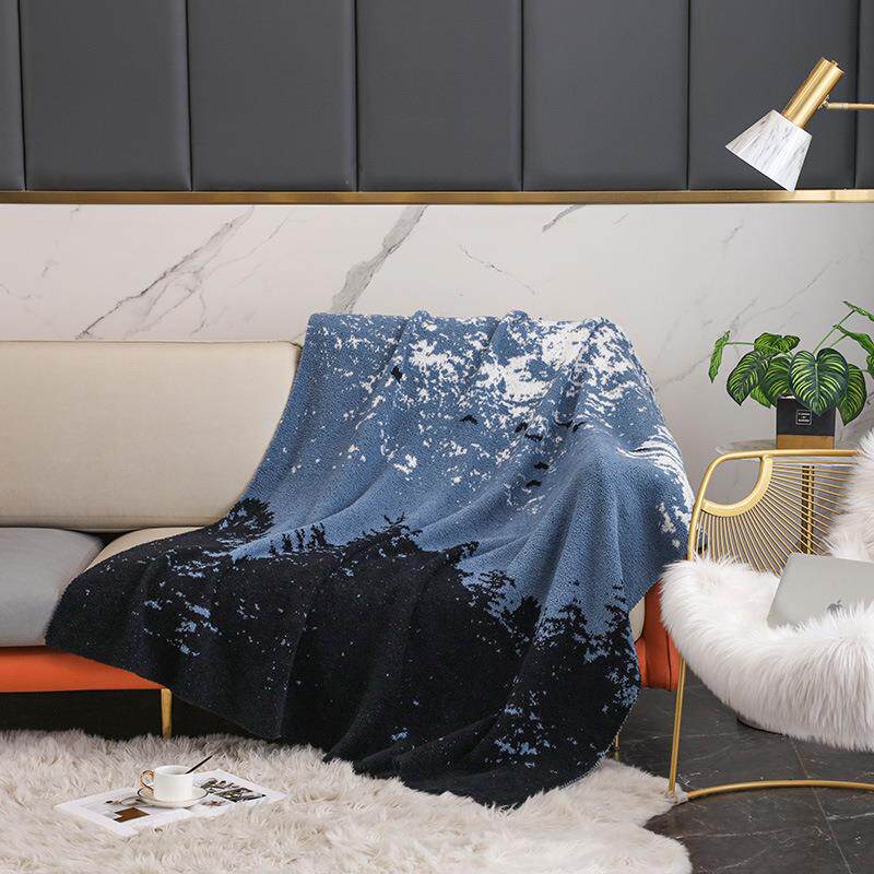 雪山森林客厅沙发毯 旅行毛毯 加厚保暖针织毯绒床单