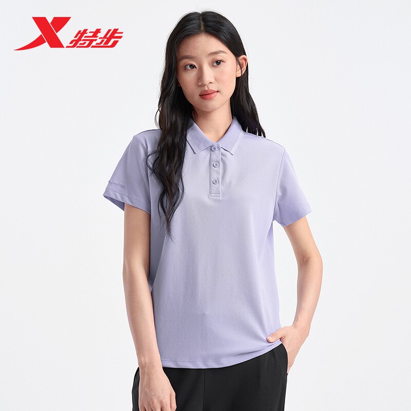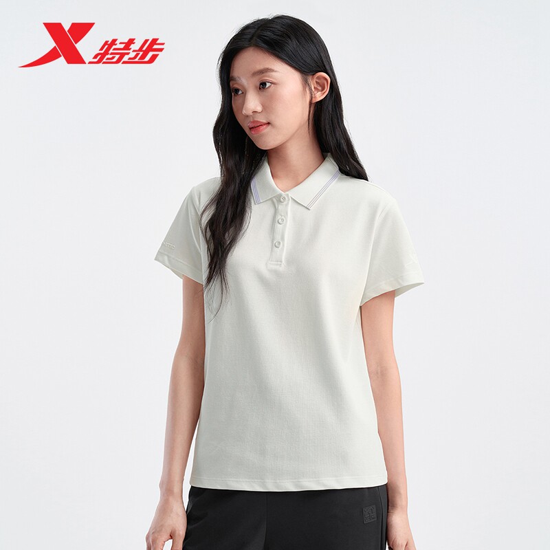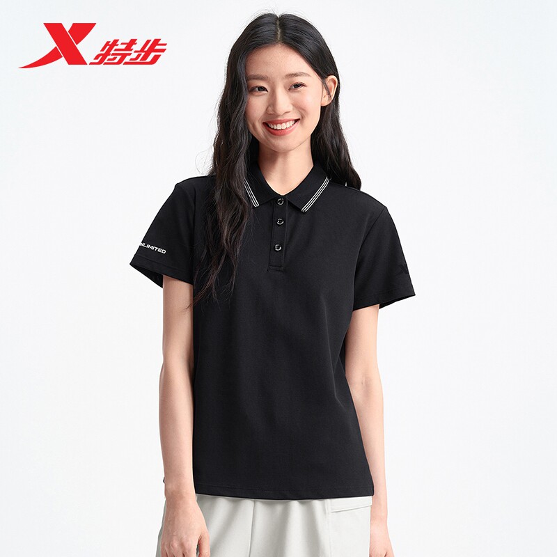 特步POLO衫女士官方新款夏季透气训练短袖透气运动上衣9752280