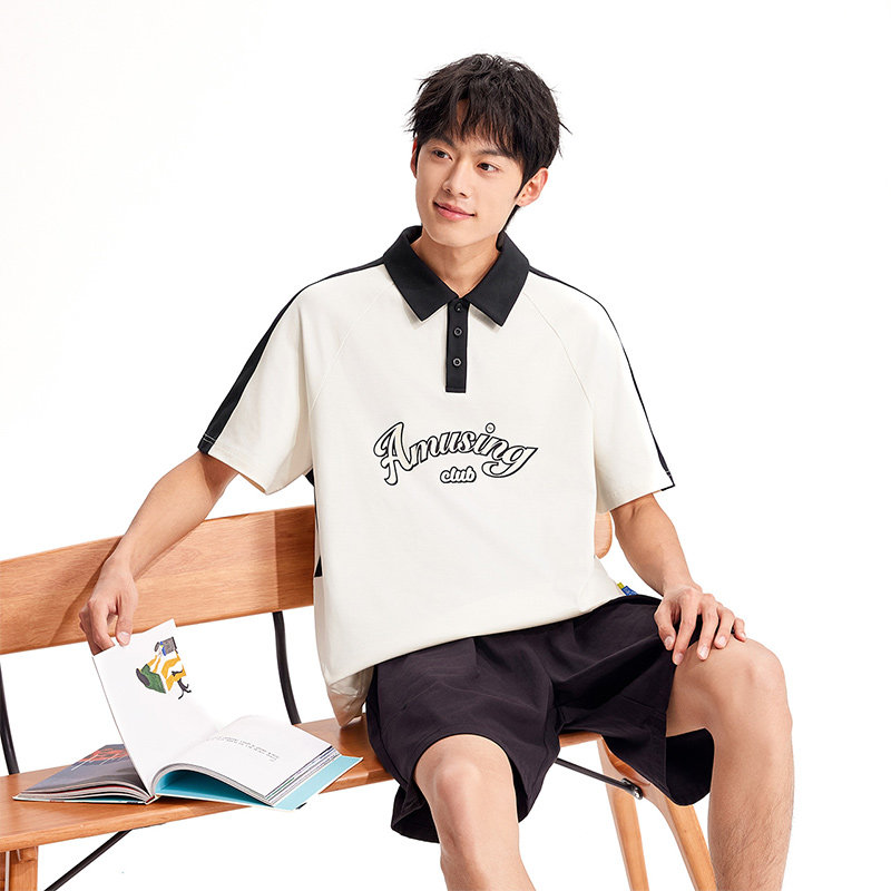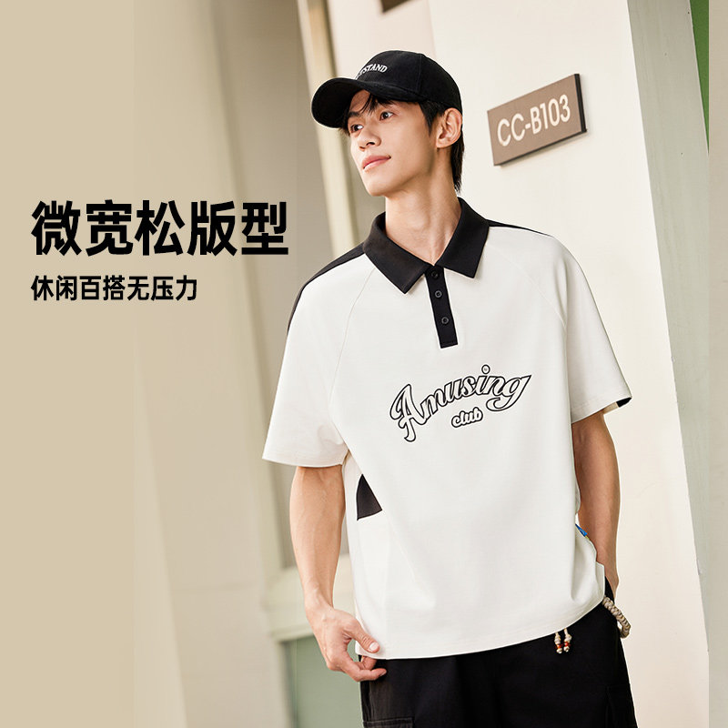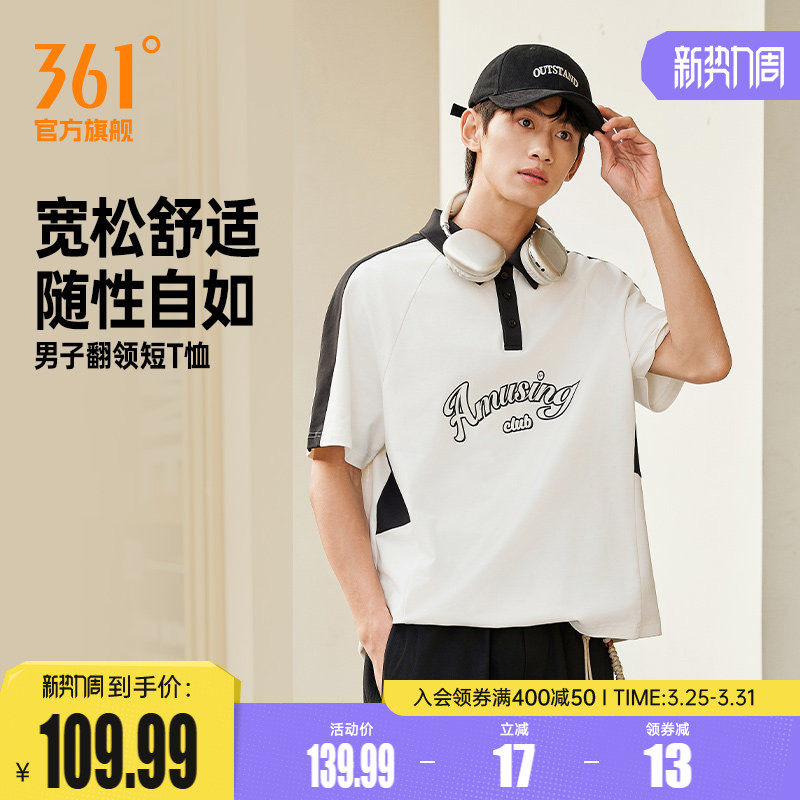 361运动T恤男2026夏季新款男子宽松休闲POLO衫拼色学院风翻领短袖