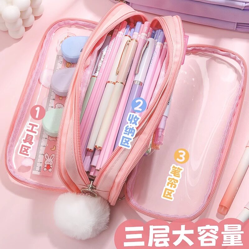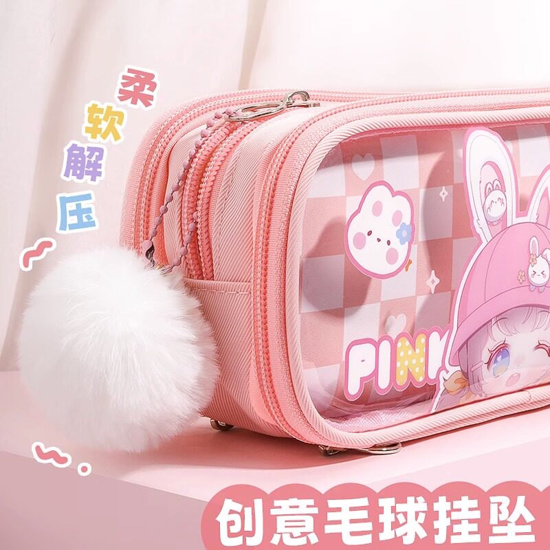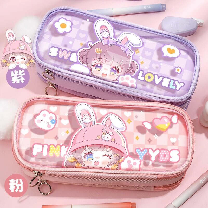 折耳妹妹女孩大容量笔袋透明文具盒多功能铅笔盒2025年流行版小学生少女心儿童可爱高颜值多层文具袋铅笔袋