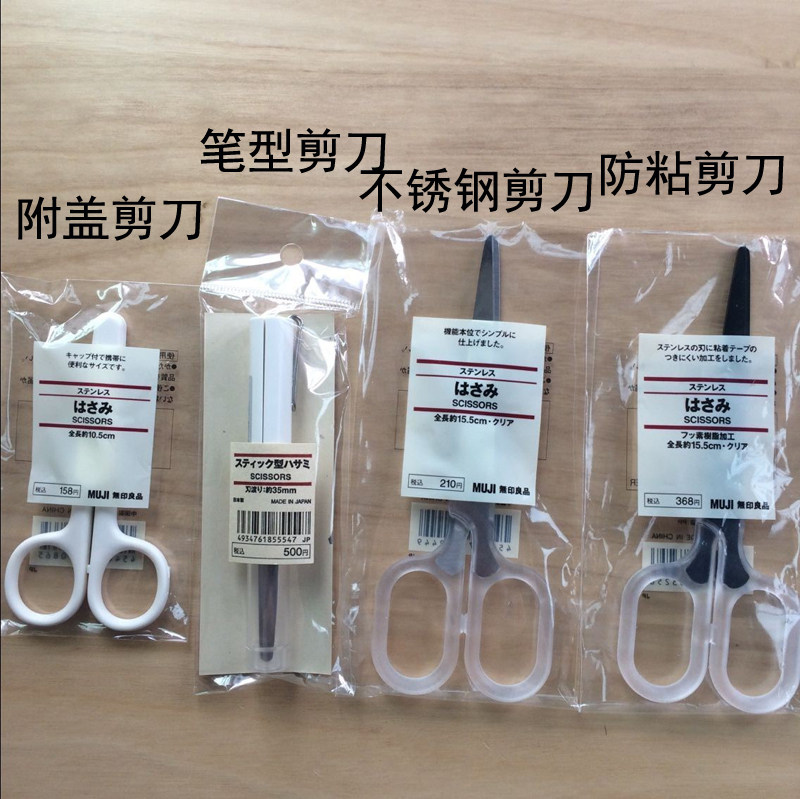 现货MUJI无印良品文具剪刀不锈钢剪刀圆头安全附盖便携式笔型剪刀