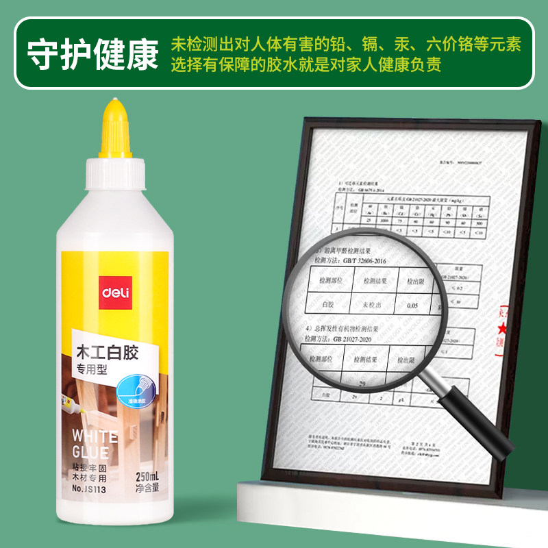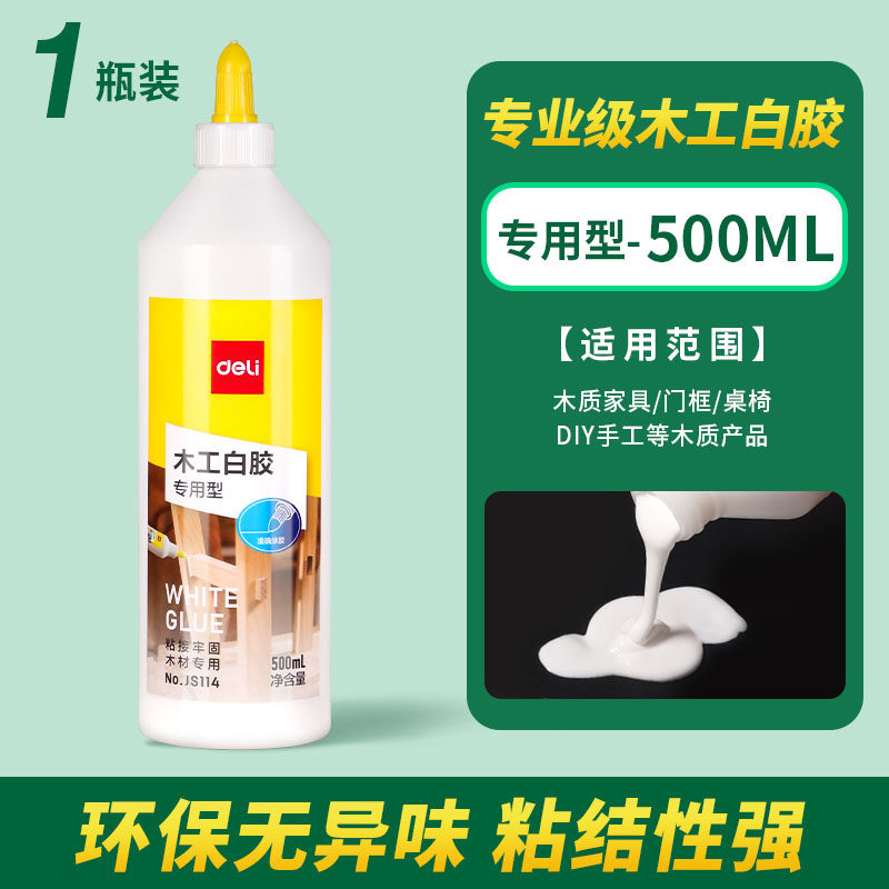 得力木工胶水粘木头专用强力家具木材开裂修复实木地板椅子凳子桌子白乳胶粘合剂木板修补门框白胶粘接踢脚线