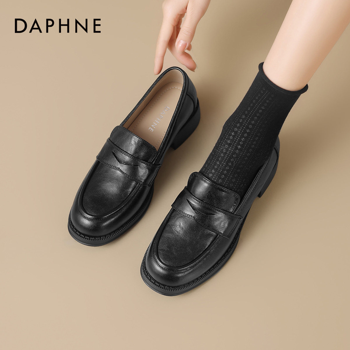 达芙妮黑色小皮鞋女春秋2026新款粗中跟英伦风乐福鞋通勤面试单鞋