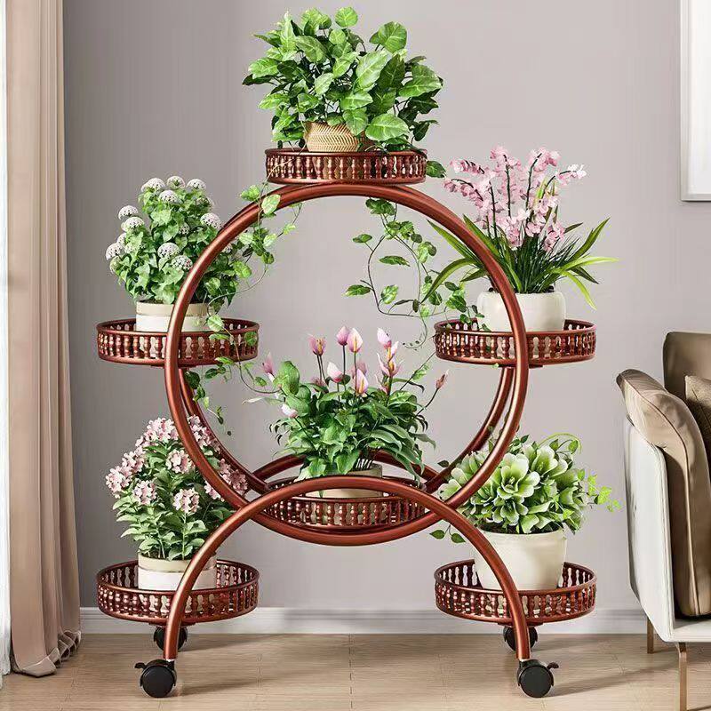 花架子客厅落地式可移动带轮绿萝花盆架铁艺多层阳台花架家用落地
