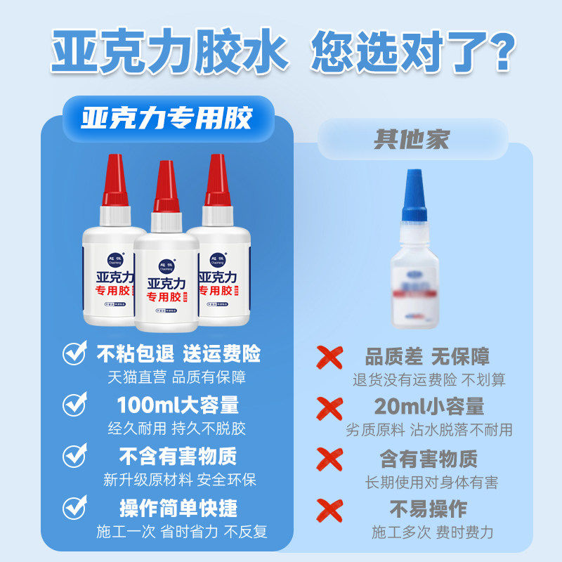 亚克力专用无痕胶水透明有机玻璃板仿氯粘合剂快干甲烷胶abs专用