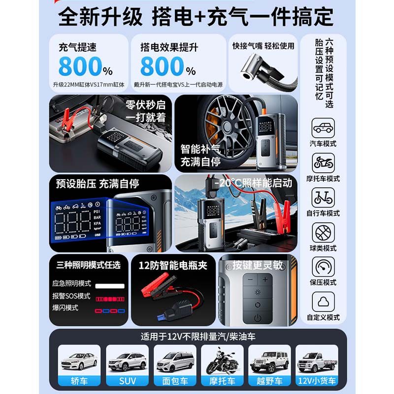 小能人汽车应急启动电源充气泵一体机车载打气电瓶紧急搭电宝神器