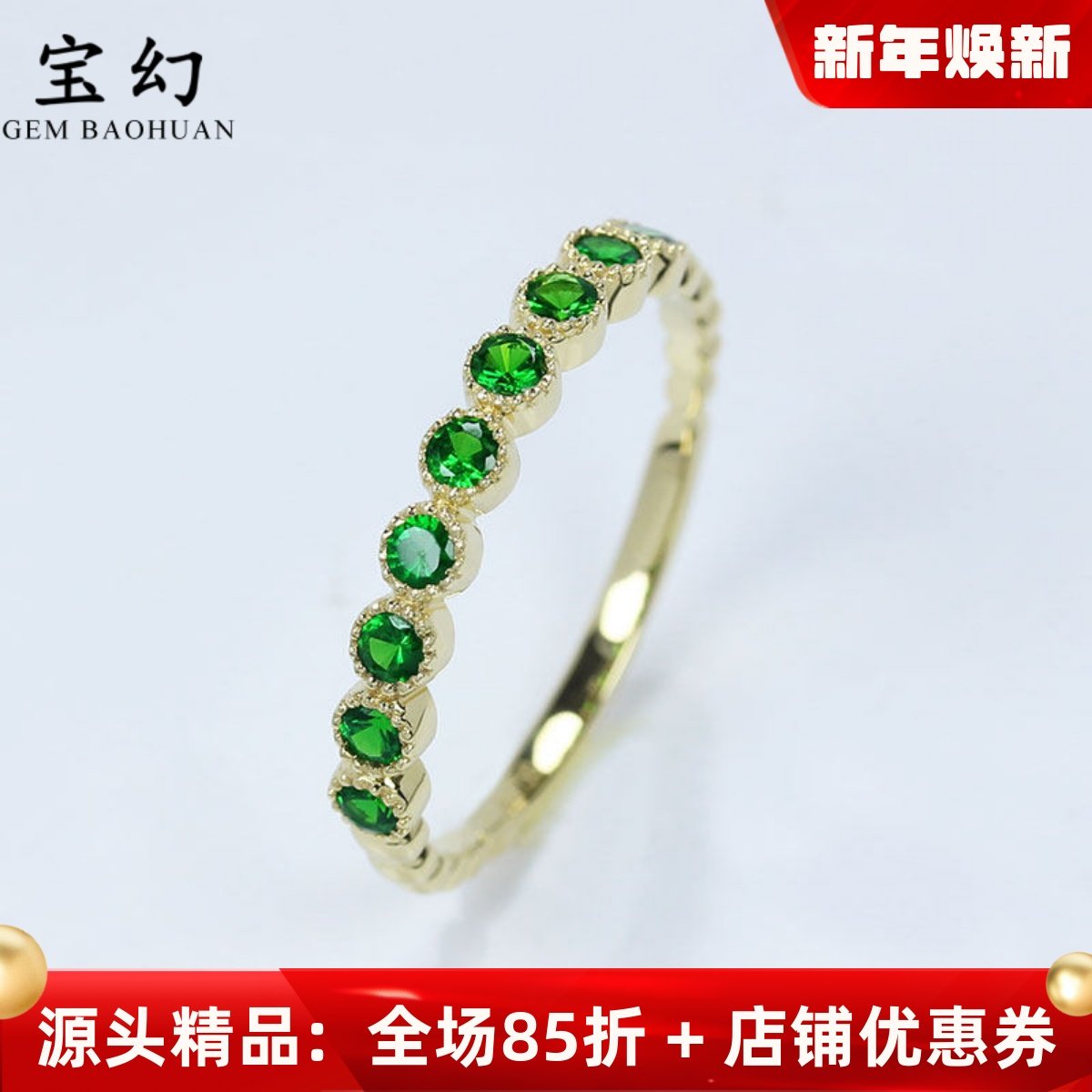 18k黄金肯尼亚天然翠绿沙弗莱排戒 铬钒钙铝榴石绿色宝石群镶女款