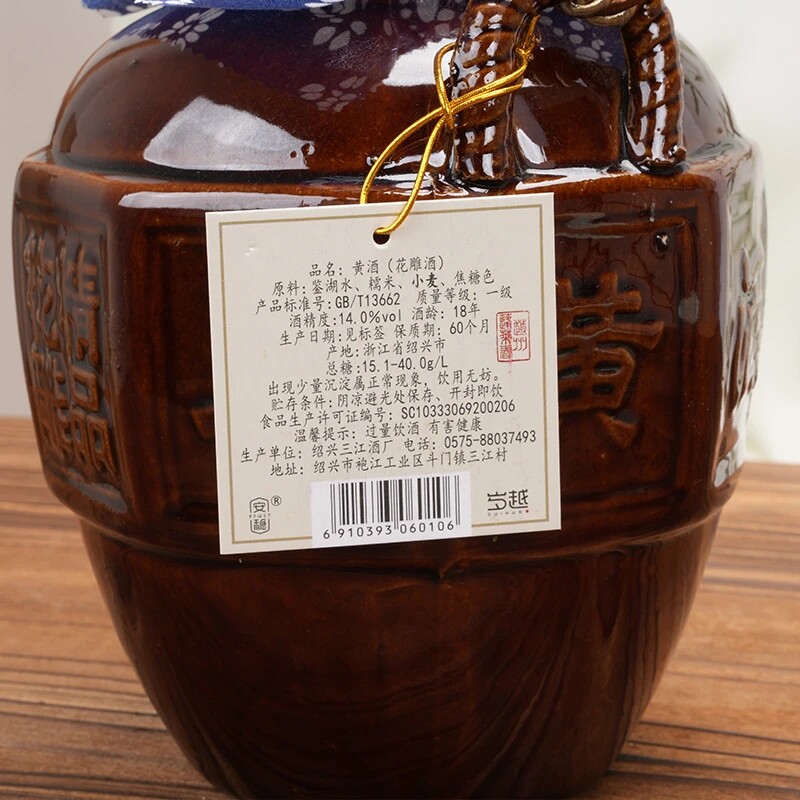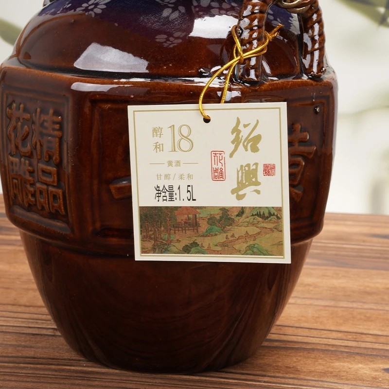 绍兴产黄酒陈花雕酒1.5L正宗加饭酒3斤陶坛装十五年干型瓶装糯米
