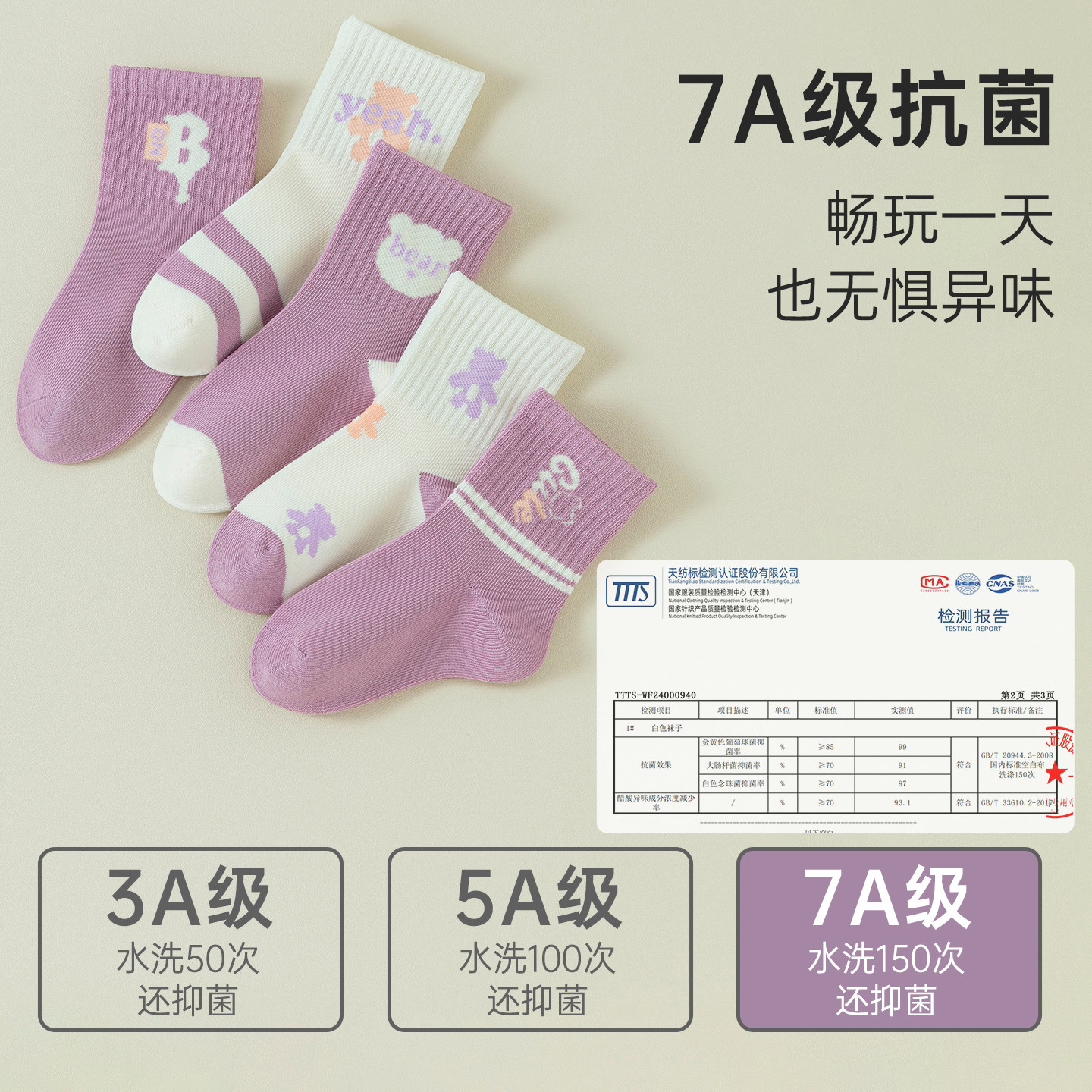 女童袜子春秋纯棉7A抗菌防臭中筒袜子女孩秋冬无骨运动袜透气吸汗
