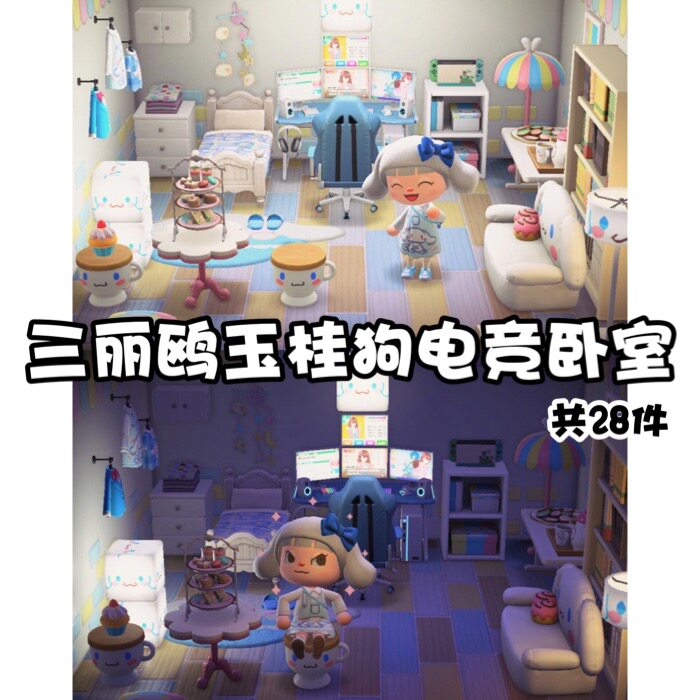 ha三丽鸥玉桂狗电竞卧室室内外家具全动森猛男捡树杈岛屿素材设计