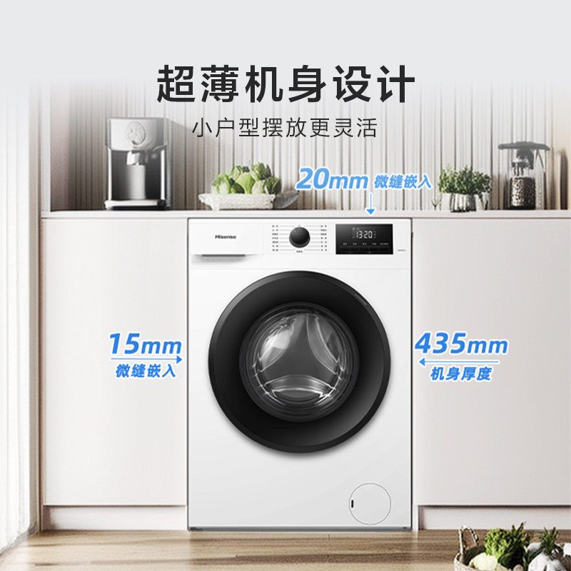 海信HG7NE1超薄38.5CM滚筒全自动家用变频洗衣机高温除菌纤薄洗脱