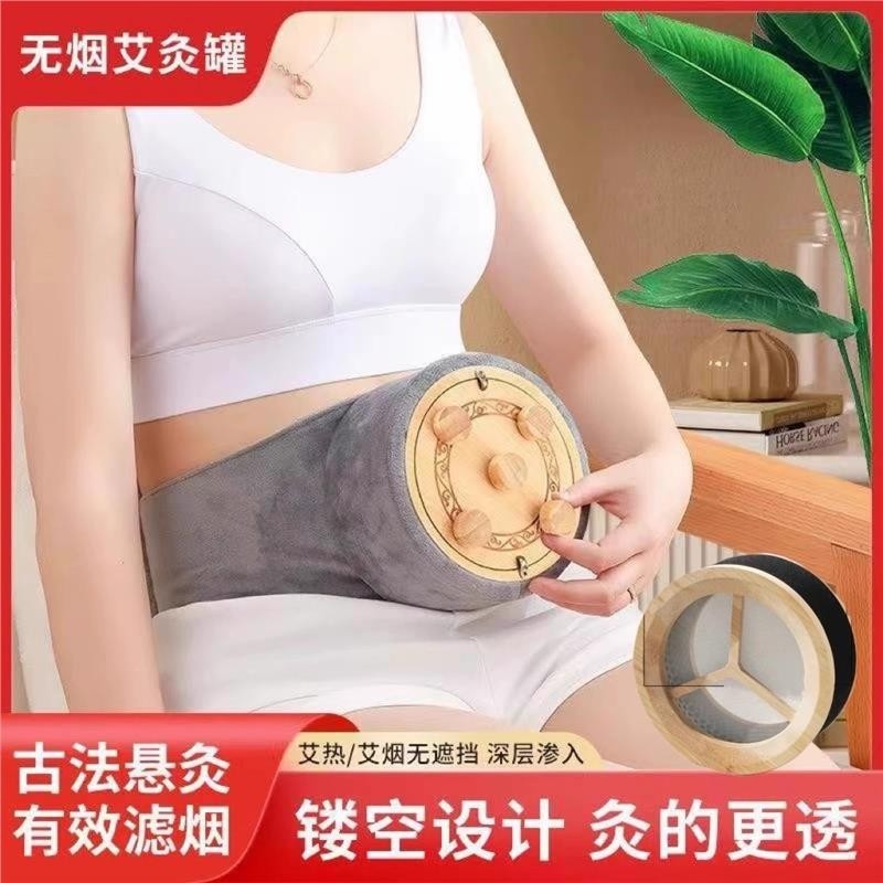 高档无烟艾灸盒楠竹家用随身灸全身灸腹部腰背悬灸大罐艾灸罐艾柱