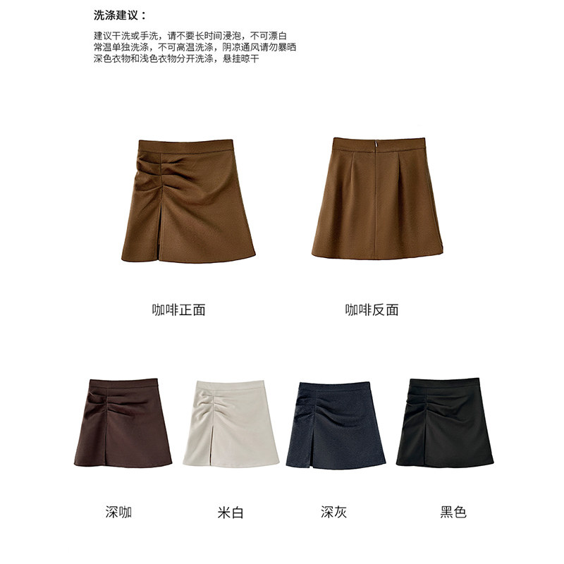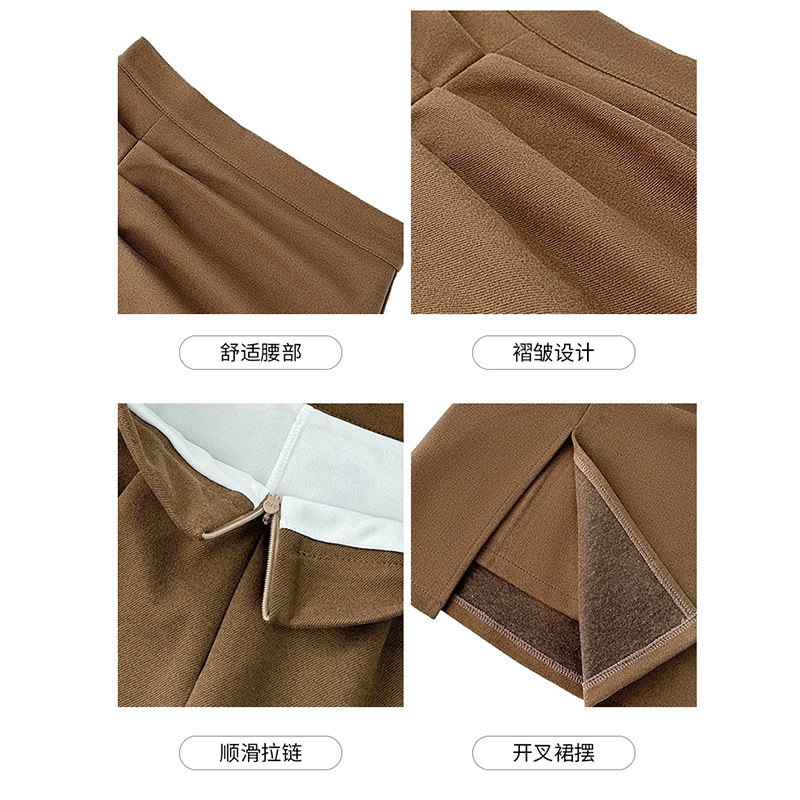 NOME(服饰)咖色半身裙女秋季开叉显瘦百搭设计感褶皱包臀短裙