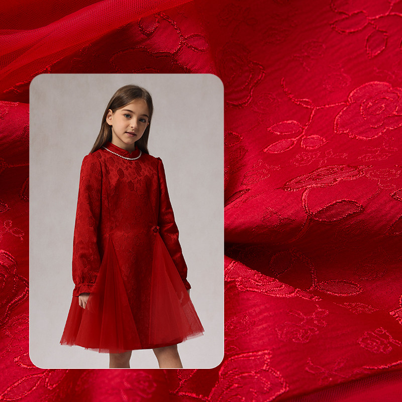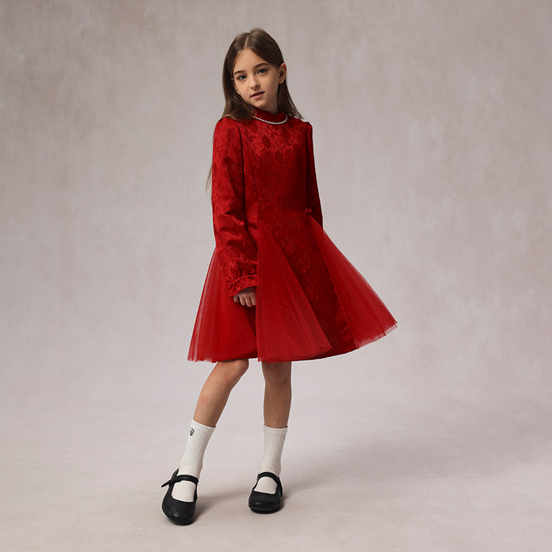 [抗菌远红外]女童连衣裙宝宝高领加绒蓬蓬网纱裙子儿童红色公主裙