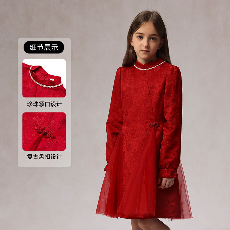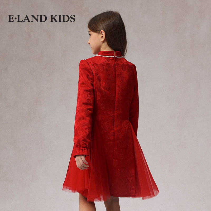 eland kids衣恋童装女童连衣裙春秋中国风立领中式甜美裙子演出服