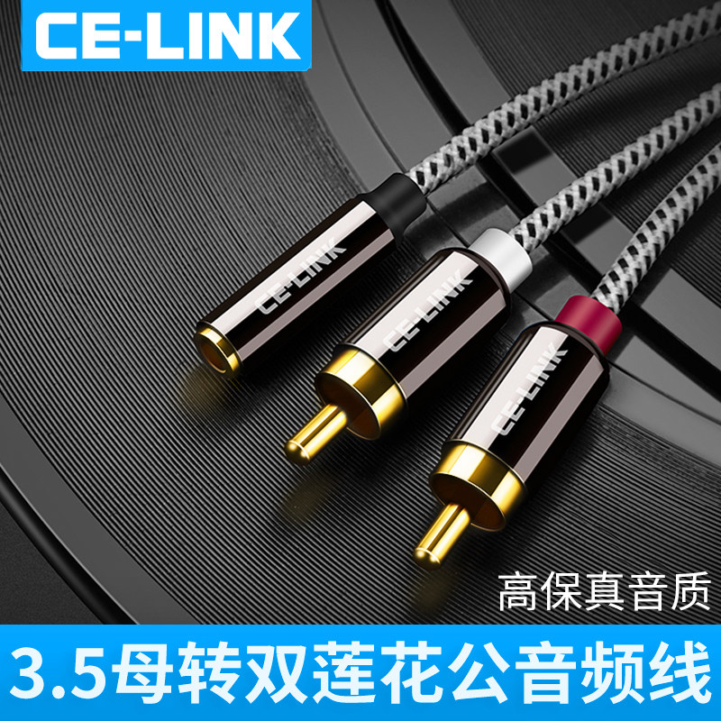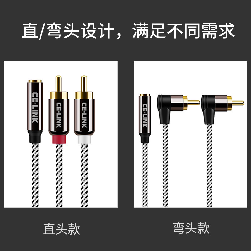 celink 3.5mm母转双莲花公音频线电视耳机AV音响红白rca一分二转接线弯头镀金双声道电脑机顶盒DVD功放连接线