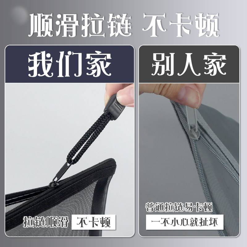 L型学科目分类袋透明网纱文件袋拉链大开口学生手提拎书袋考试用
