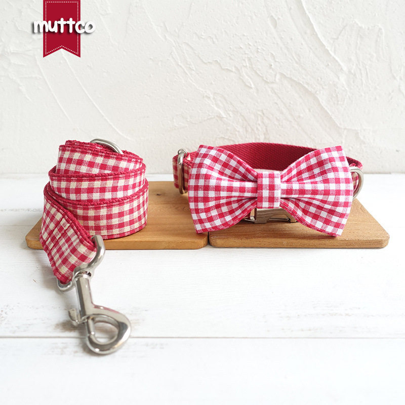MUTTCO宠物用品批发 项圈领结套装牵引带格子蝴蝴蝶结狗圈UDC-047