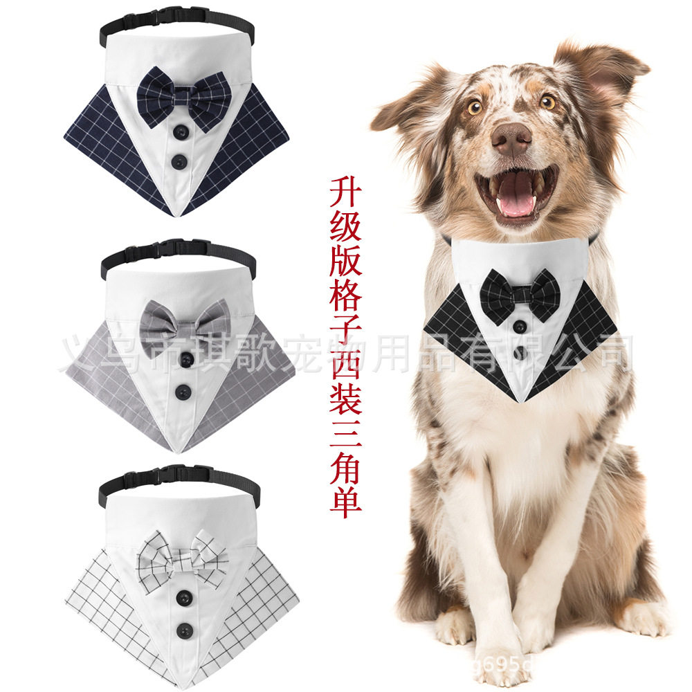 新款格子西装宠物口水巾狗项圈狗西装领带宠物领结派对西装三角巾