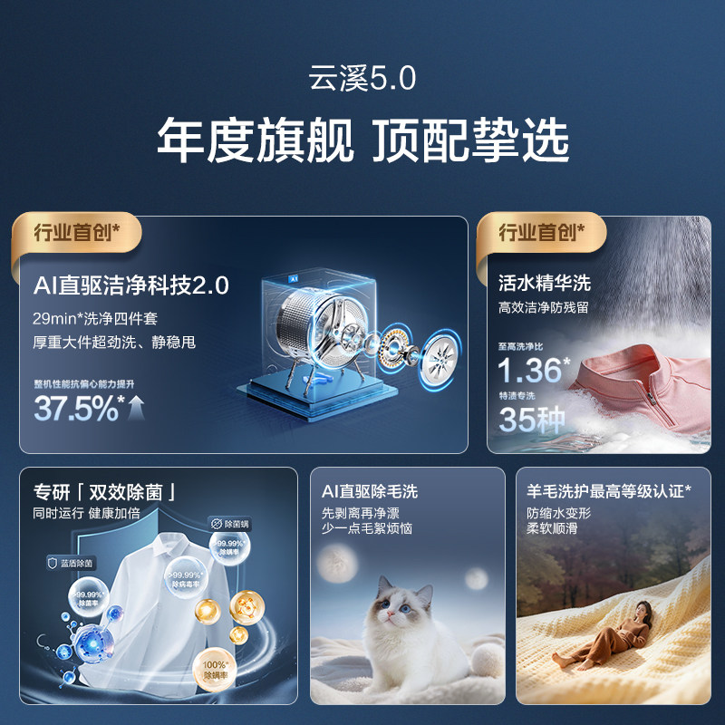 [云溪5.0 高配版]海尔新品滚筒洗衣机全自动超薄大容量洗脱D3