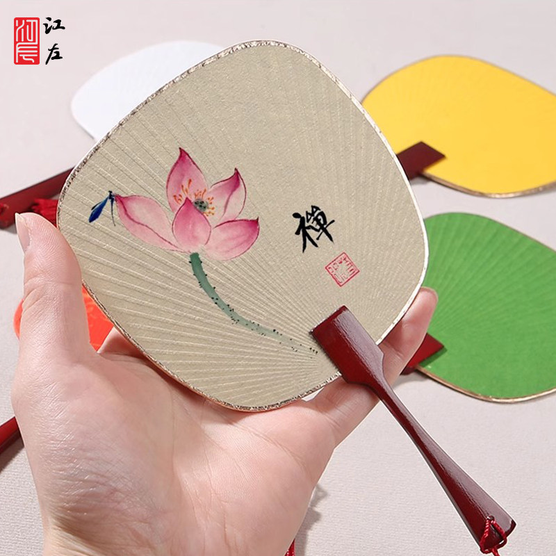 江左宣纸团扇迷你木柄空白双面diy扇子手绘国画书法手写毛笔字扇面便携古风汉服女国风书法作品专用纸练字