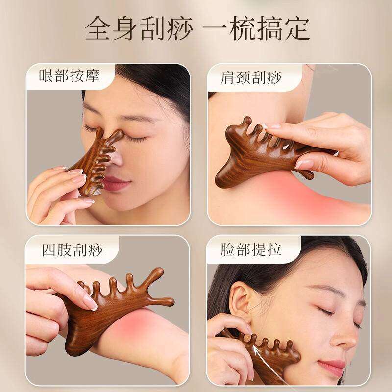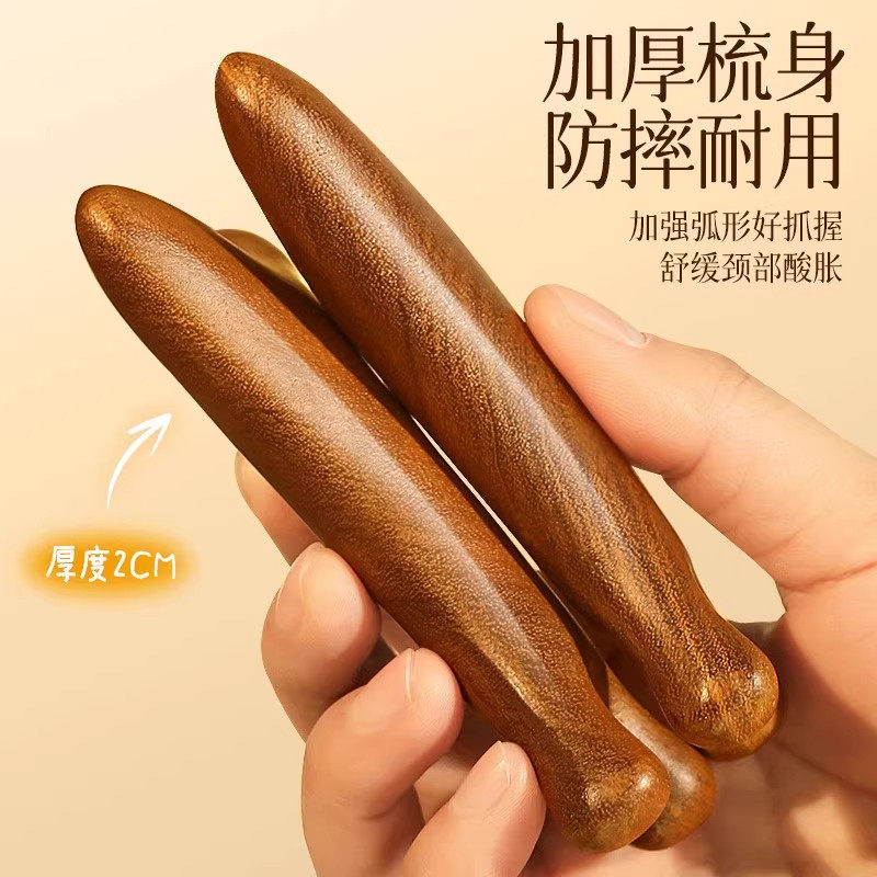 头皮按摩梳檀木梳子男女刮痧头疗头部经络专用圆头大宽齿不易发脱
