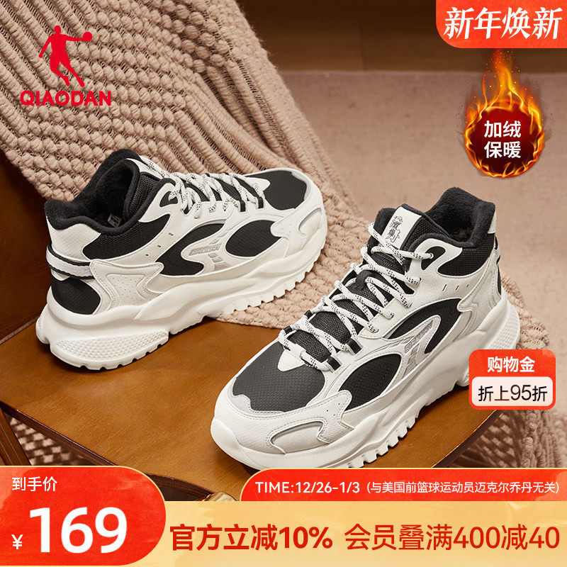 乔丹小千禧高帮加绒保暖棉鞋男休闲鞋2025冬季新款皮面防水运动鞋