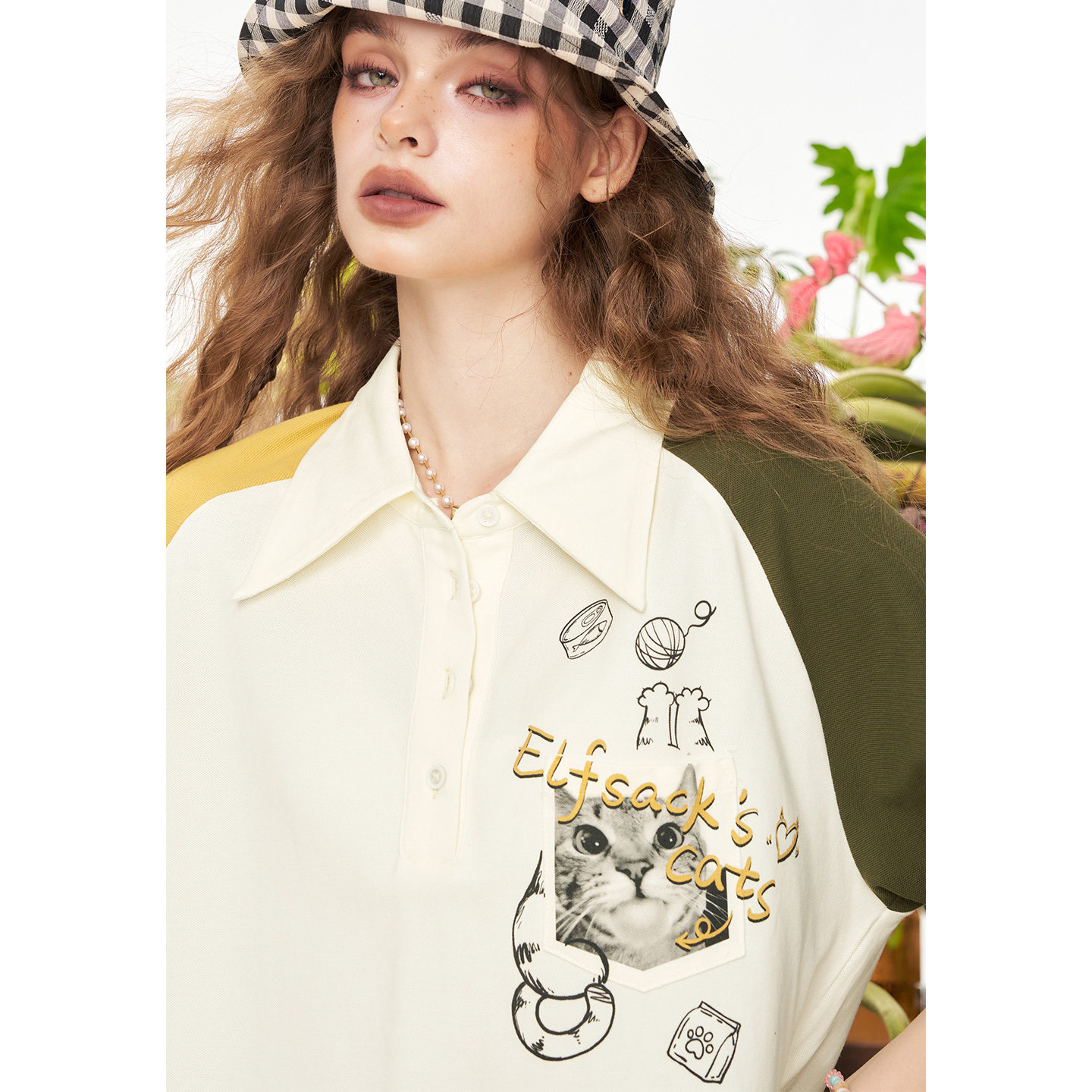 妖精的口袋撞色插肩猫咪印花连衣裙女2026夏季新款宽松休闲t恤裙