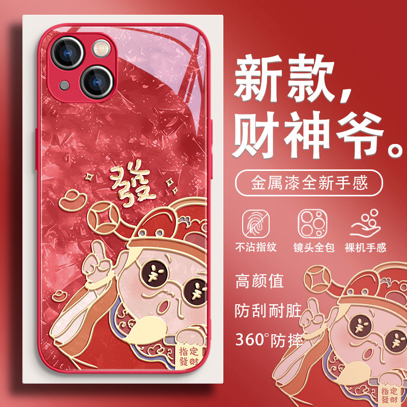 适用苹果16手机壳财神爷15promax新年款iPhone14中国风13高级感12马年x小众xr简约xs创意11发财8plus玻璃7套6