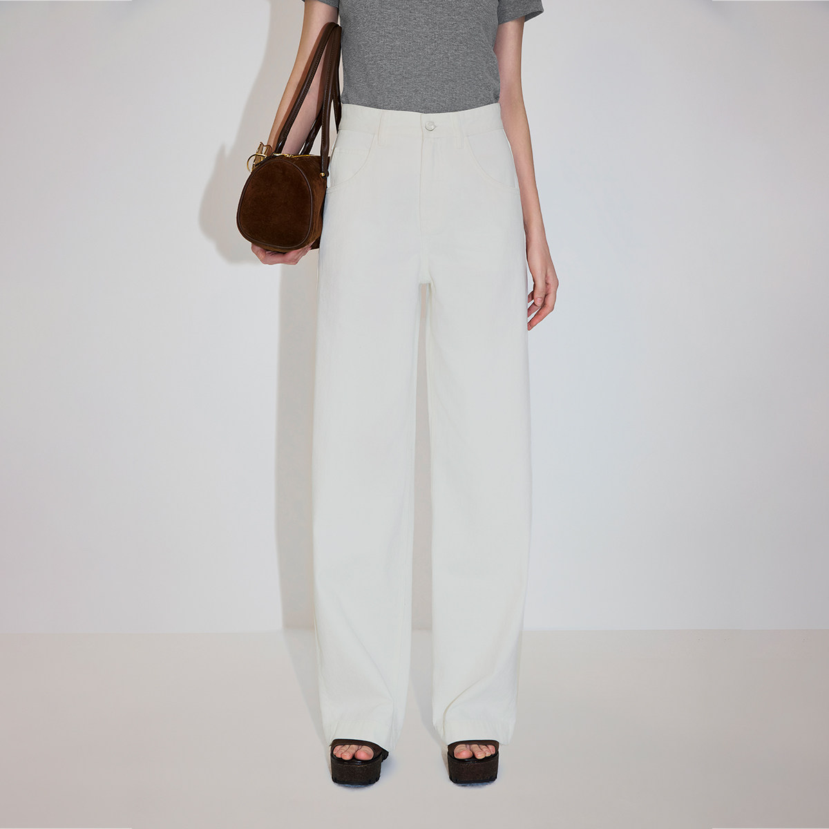 森柔牛仔|森马阔腿牛仔裤女2025秋冬白色牛仔裤简约女士高腰裤子