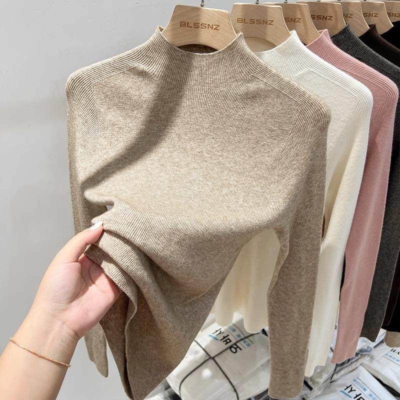 高级感不起球羊绒衫女半高领针织打底衫秋冬新款内搭修身显瘦毛衣