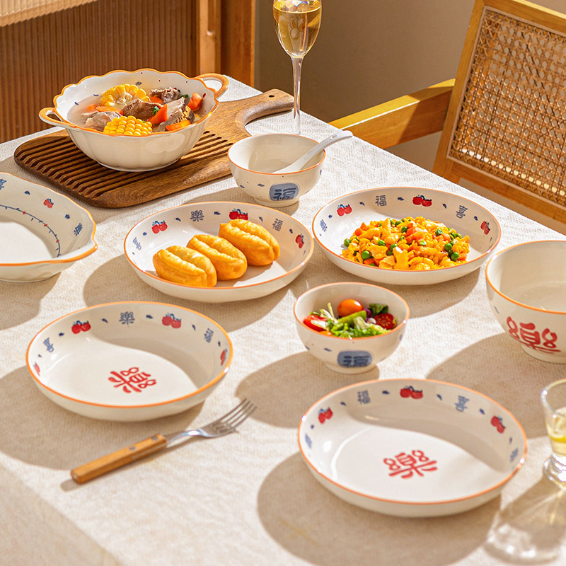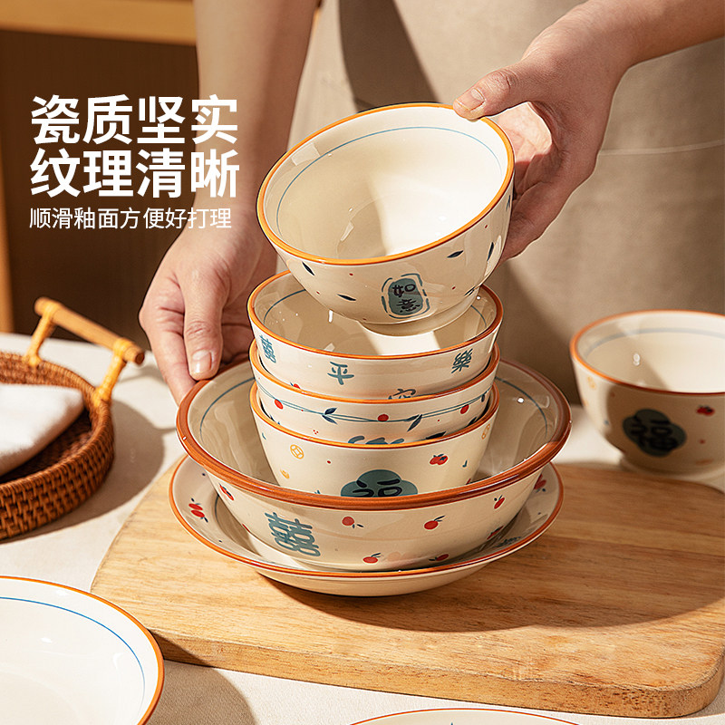 陶瓷餐具日式创意祝福水果碗碗家用吃饭专用小碗精致可爱饭碗