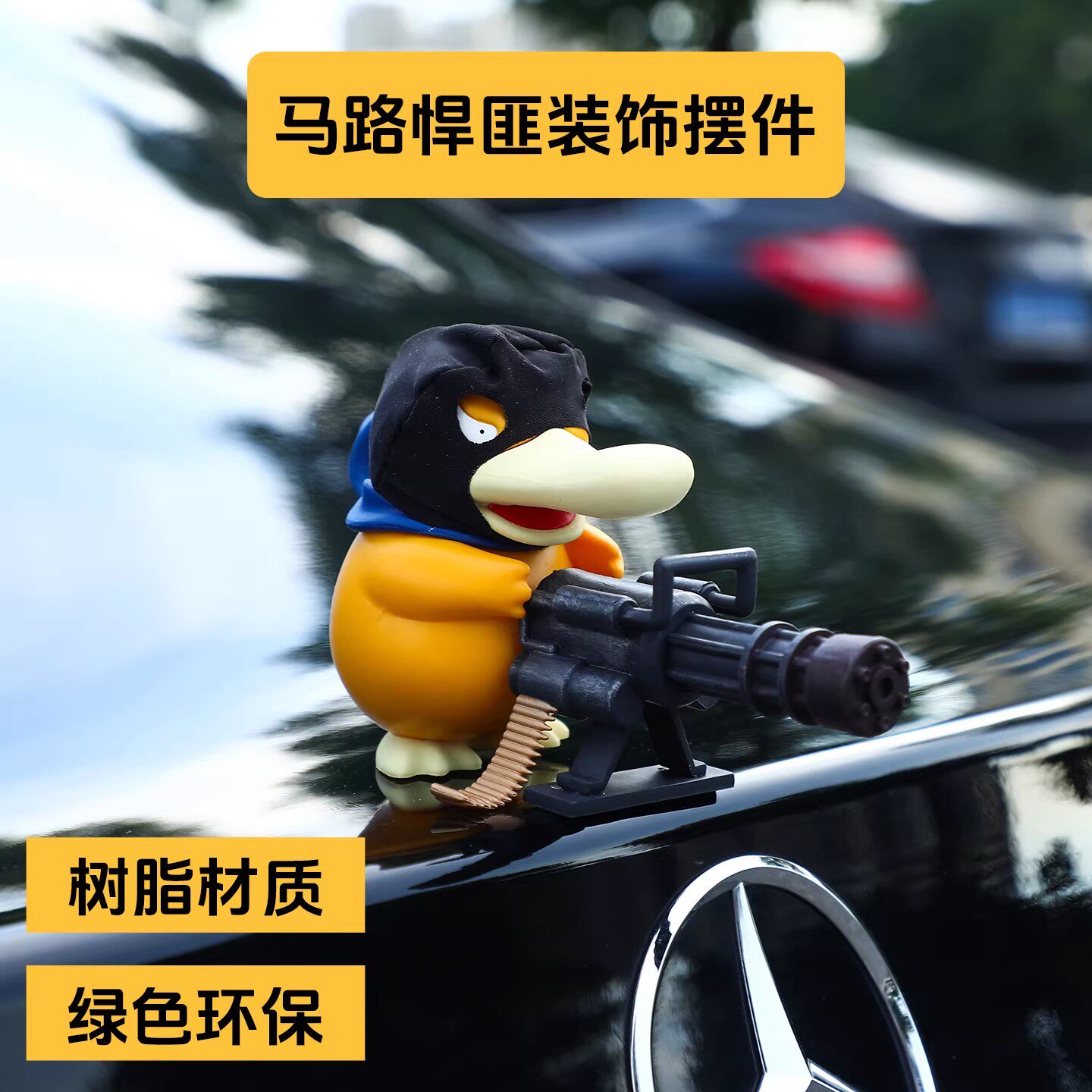 车载加特林可达鸭汽车摆件车顶车外电动车装饰品车后尾部公仔玩偶