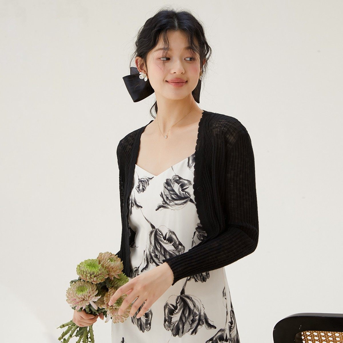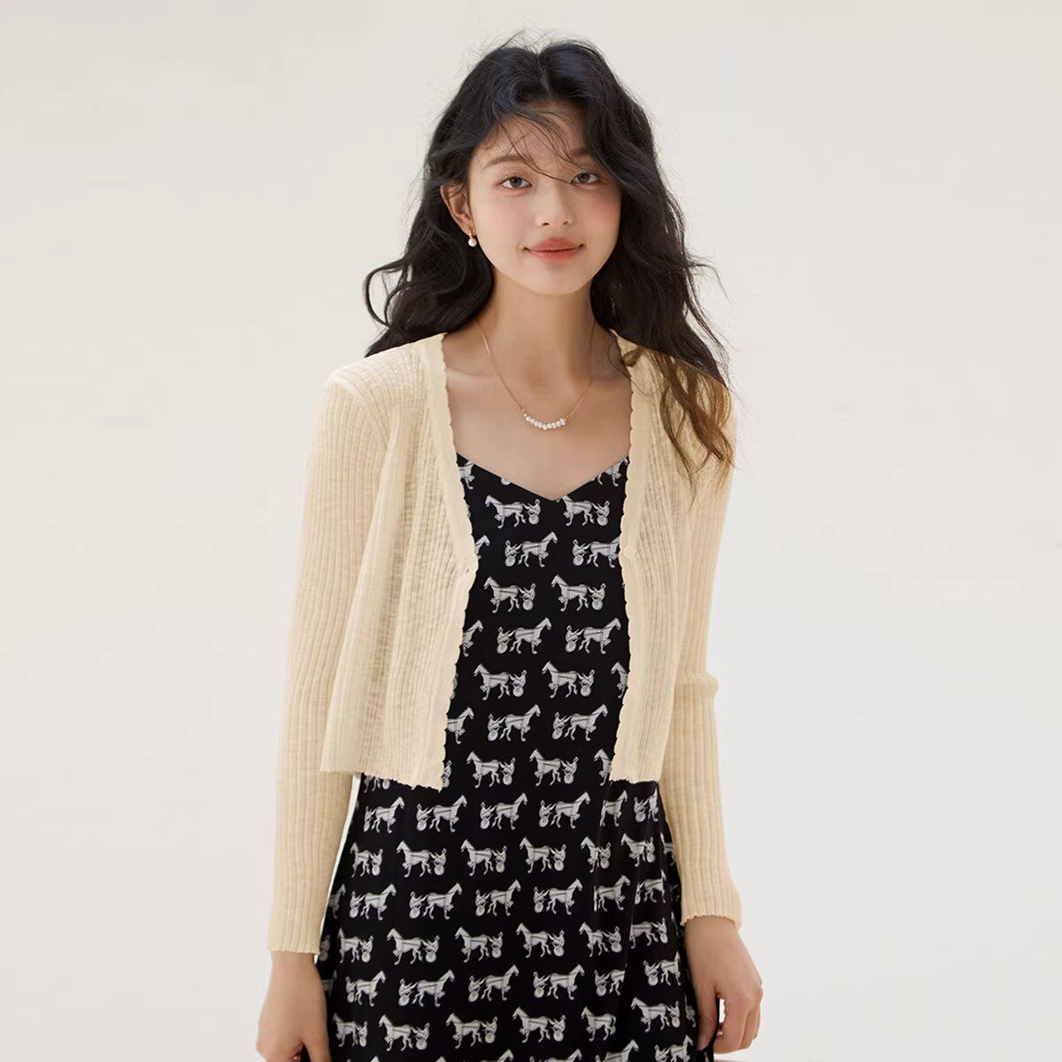 one more短款v领针织外套女夏款高级感外搭开衫披肩外穿气质上衣