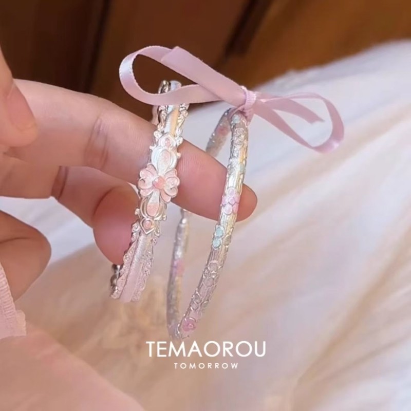 新中式鎏金手工雕刻珐琅滴油粉色花朵雕刻手镯女民族风手环手饰品