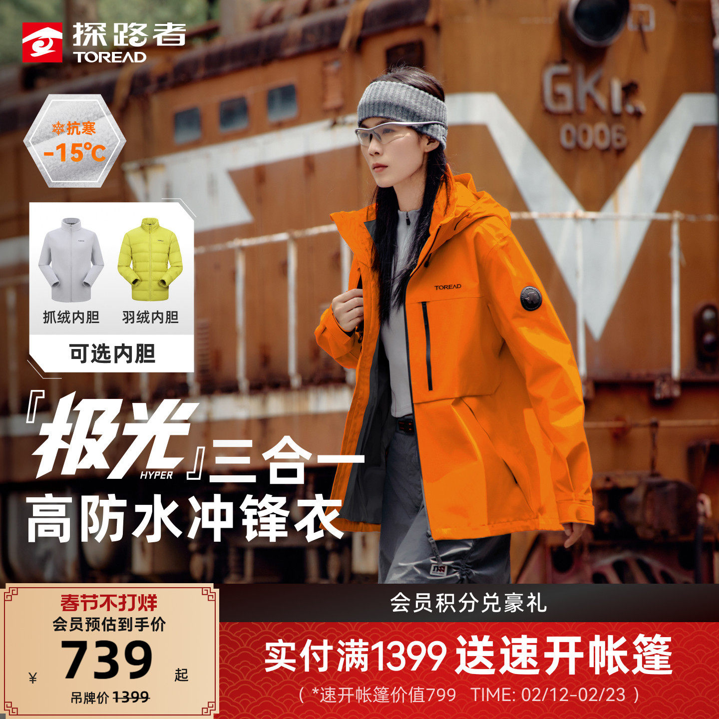 极光探路者冲锋衣女新款户外防风防泼好看硬壳羽绒服三合一外套男