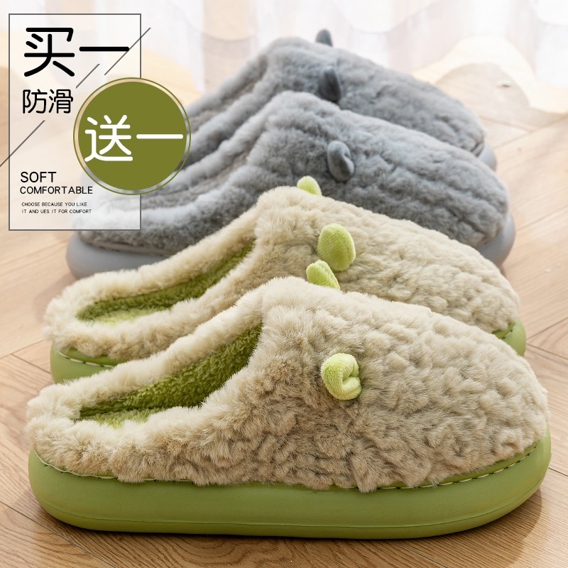 棉拖鞋家居室内女士防滑买一送一冬季一对保暖情侣厚底毛绒棉拖男