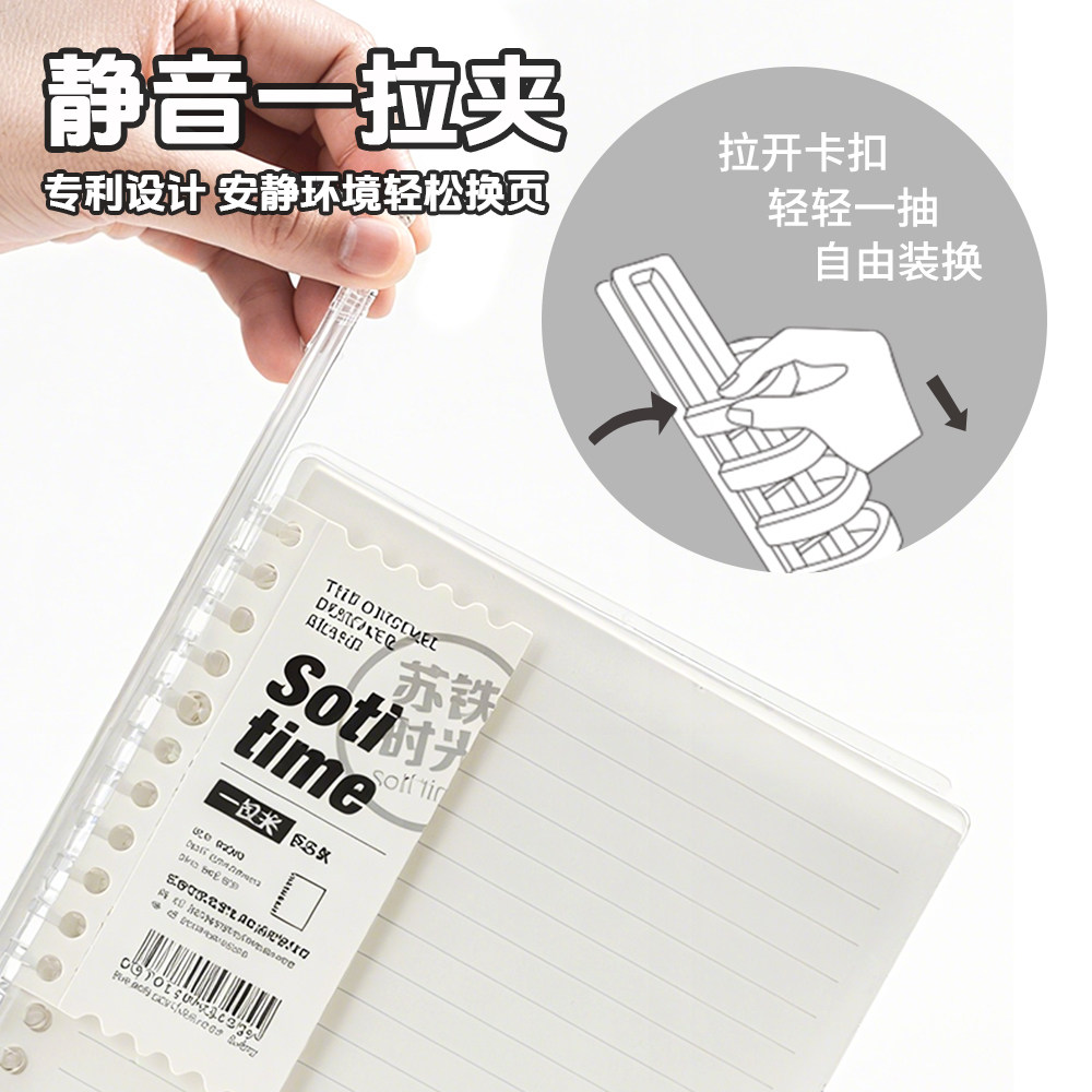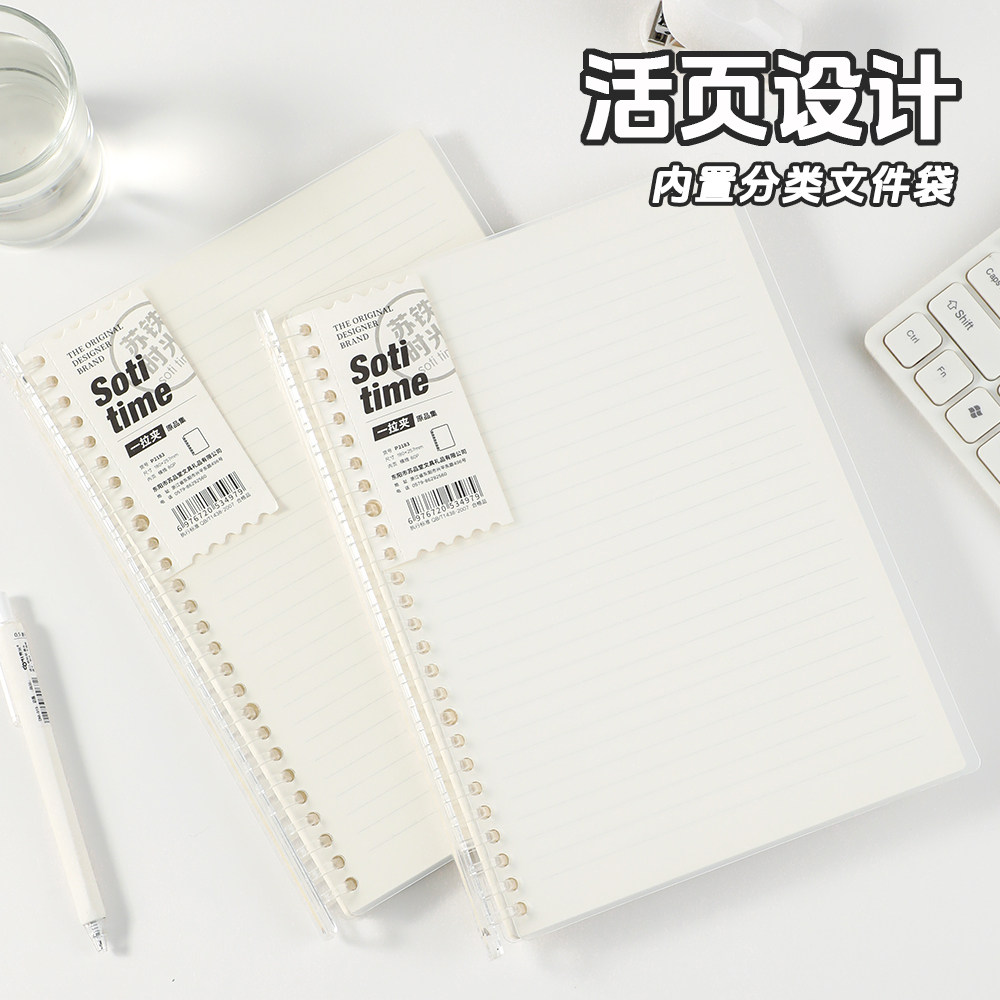 苏铁时光简约活页本一拉夹B5A5加厚DIY可拆卸ins风学生静音笔记本高颜值学生用大容量手账本小清新单页日记本