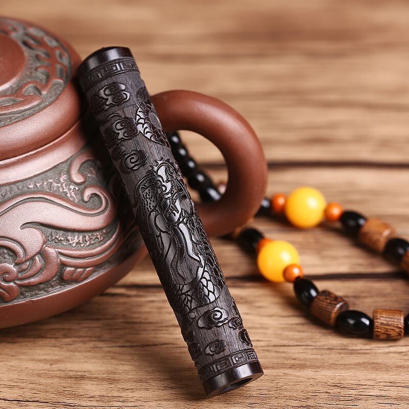 充电款打火机黑檀木雕刻火折子防风复古个性创意吹一吹电子点烟器老公父亲节送男朋友生日礼物