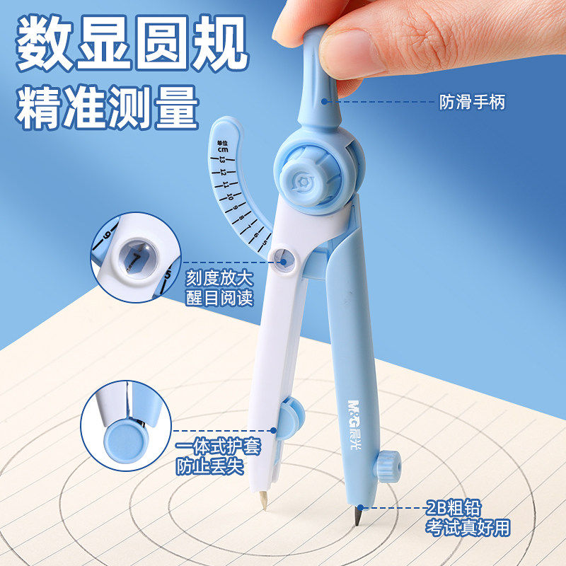 晨光数显圆规小学生专用按动高颜值初中生用多功能锁距尺规附替换笔芯初高中生专业绘图套装儿童制图工具画圆