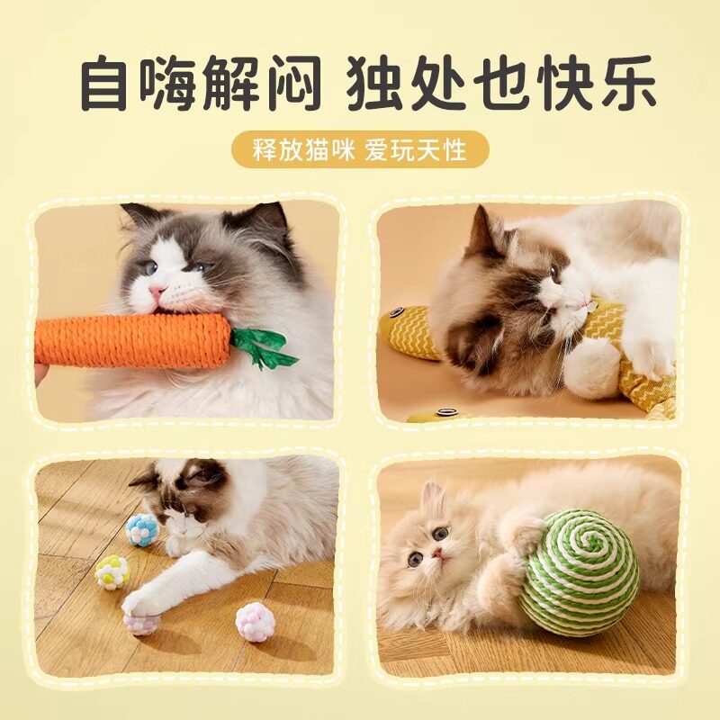 猫玩具自嗨解闷逗猫棒磨牙耐咬剑麻球小猫咪消耗体力宠物用品大全