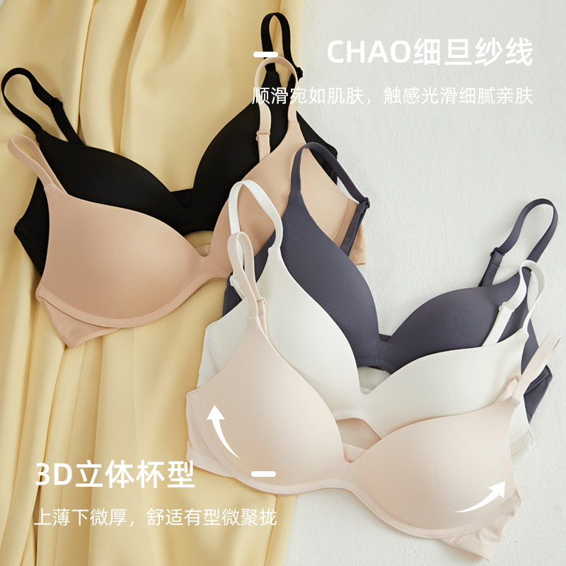 草本初色内衣女细肩带无痕夏季薄款大胸显小胸聚拢凉感无钢圈文胸