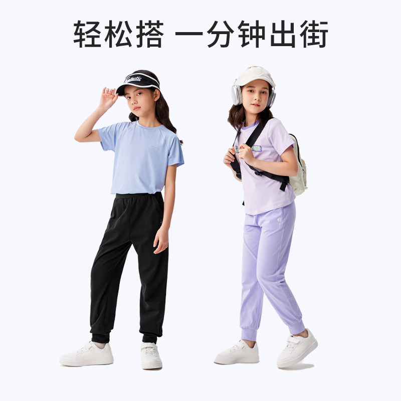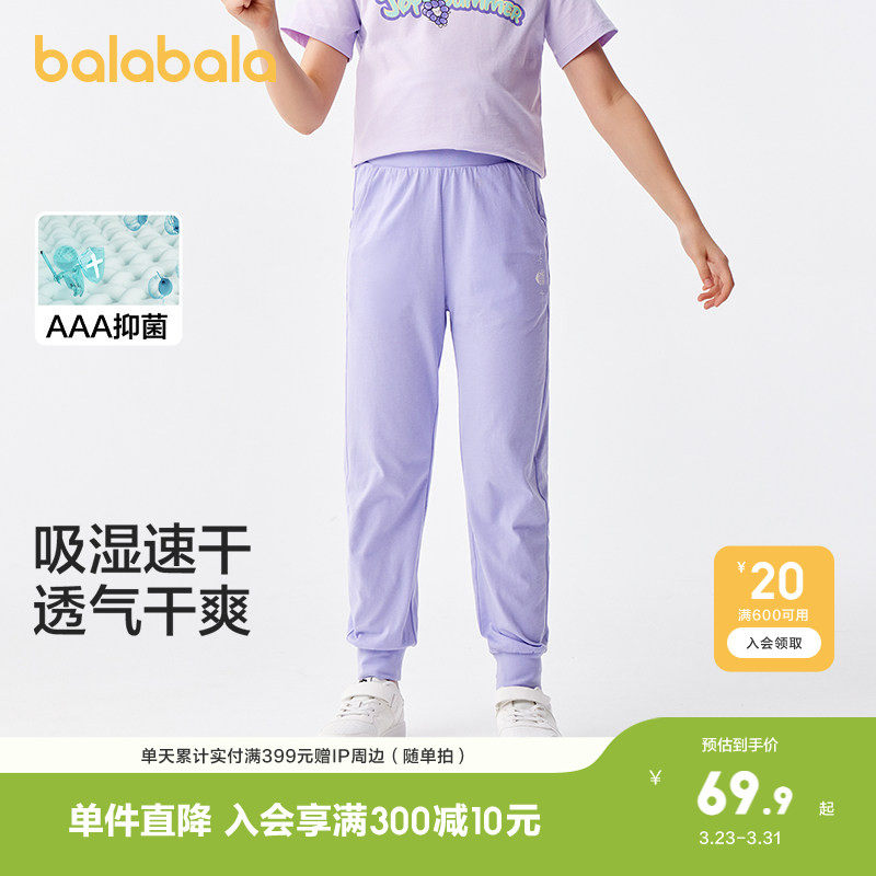 巴拉巴拉女童裤子儿童休闲裤夏装男中大童长裤速干运动薄款束脚裤